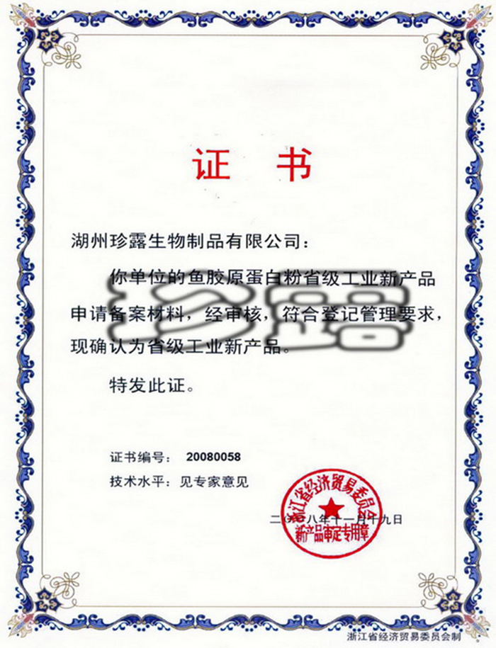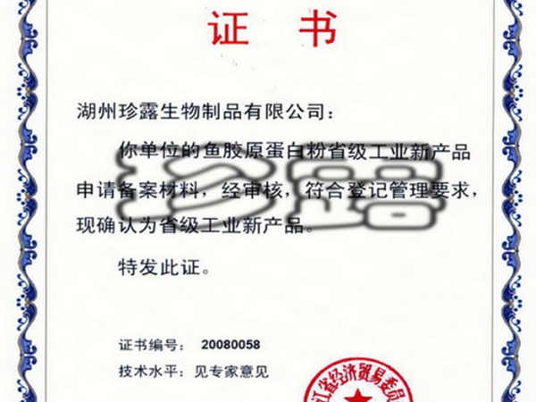 浙江省工業(yè)新產(chǎn)品(魚膠原蛋白粉)